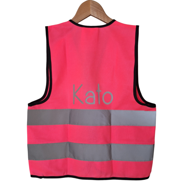 Een gepersonaliseerde fluohesje zorgt voor optimale zichtbaarheid in het verkeer én makkelijke naamherkenning voor de begeleider. Een must-have voor elke kleine stapper!